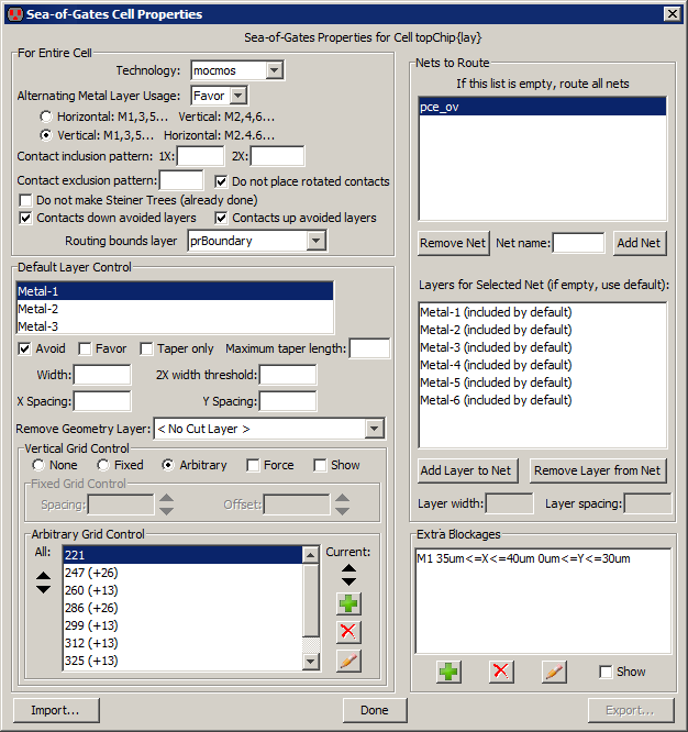The upper-left part of the dialog controls routing properties for the entire cell.